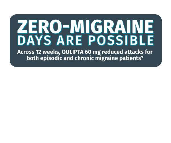 References: 1. QULIPTA (atogepant). Package insert. AbbVie Inc; 2023. 2. Protocol for: Ailani J, Lipton RB, Goadsby PJ, et al; ADVANCE Study Group. Atogepant for the preventive treatment of migraine. N Engl J Med. 2021;385(8):695-706. doi:10.1056/NEJMoa2035908