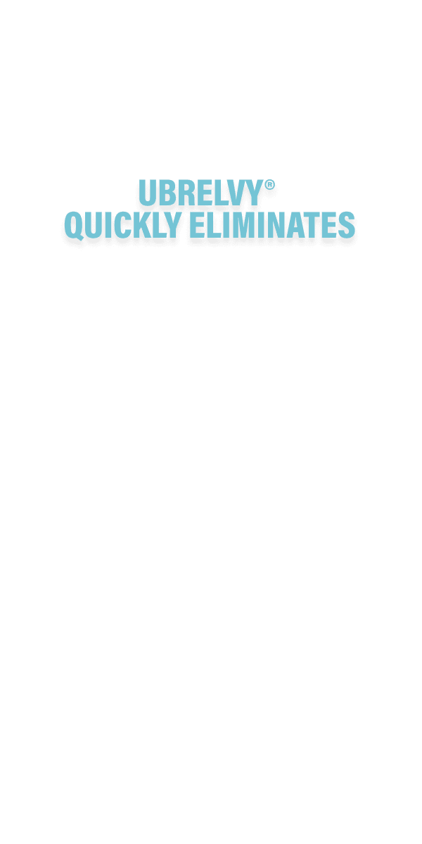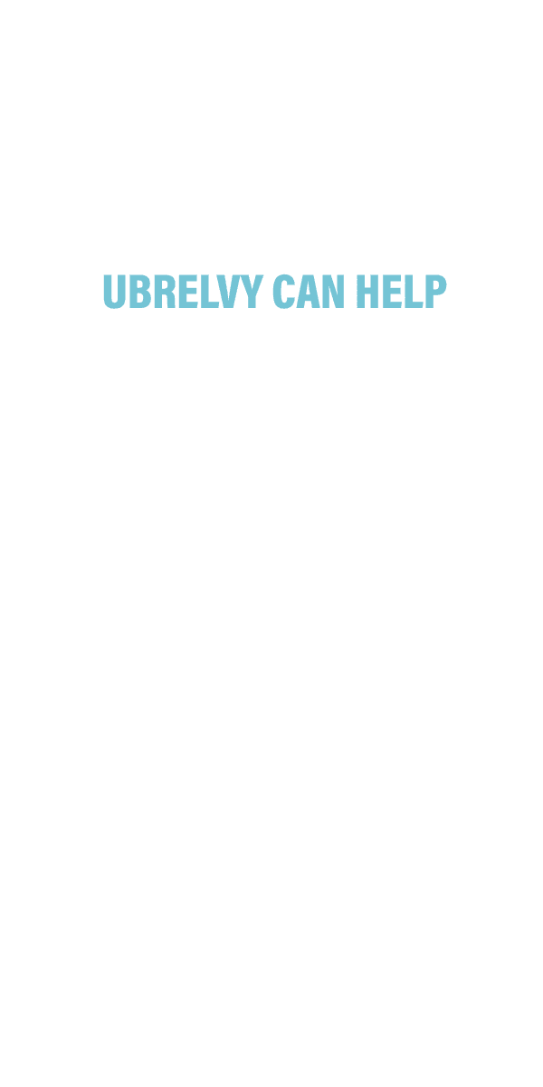 References: 1. MacGregor EA, Brandes J, Eikermann A, Giammarco R. Impact of migraine on patients and their families: the Migraine And Zolmitriptan Evaluation (MAZE) survey — phase III. Curr Med Res Opin. 2004;20(7):1143-1150. 2. UBRELVY. Package insert. AbbVie Inc; 2023. 3. Data on file. AbbVie Inc. 4. Lipton RB, Dodick DW, Ailani J, et al. Effect of ubrogepant vs placebo on pain and the most bothersome associated symptom in the acute treatment of migraine: the ACHIEVE II randomized clinical trial. JAMA. 2019;322(19):1887-1898. 5. Dodick DW, Lipton RB, Ailani J, et al. Ubrogepant for the treatment of migraine. N Engl J Med. 2019;381(23):2230-2241. 6. Hutchinson S, Dodick DW, Treppendahl C, et al. Ubrogepant for the acute treatment of migraine: pooled efficacy, safety, and tolerability from the ACHIEVE I and ACHIEVE II phase 3 randomized trials. Neurol Ther. 2021;10(1):235-249. 7. Dodick DW, Lipton RB, Ailani J, et al. Ubrogepant, an acute treatment for migraine, improved patient-reported functional disability and satisfaction in 2 single-attack phase 3 randomized trials, ACHIEVE I and II. Headache. 2020;60(4):686-700.