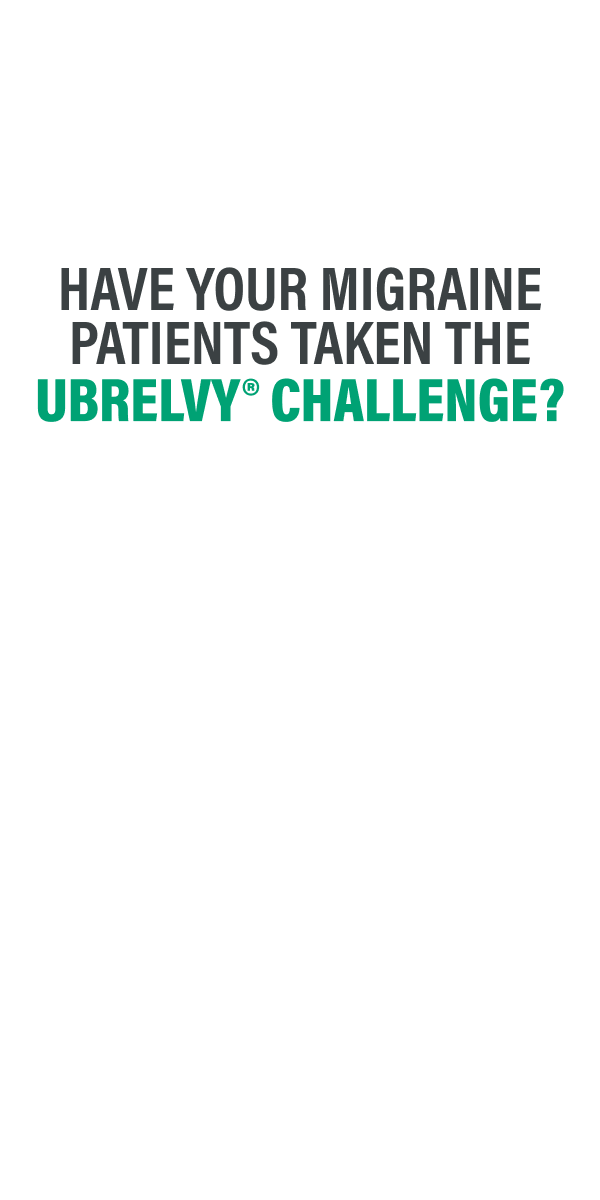 *Offer not available to patients enrolled in Medicare, Medicaid, or any other federal or state healthcare programs. Restrictions, including savings maximums, apply. Patient out-of-pocket expense will vary depending on insurance coverage. UBRELVY coupon becomes valid upon activation of offer. Oral triptan medication coupon becomes valid two (2) weeks from activation of offer and expires six (6) weeks from activation of offer. For full Terms and Conditions, visit UBRELVY.com/challenge or call 1-844-577-6239 for more information.