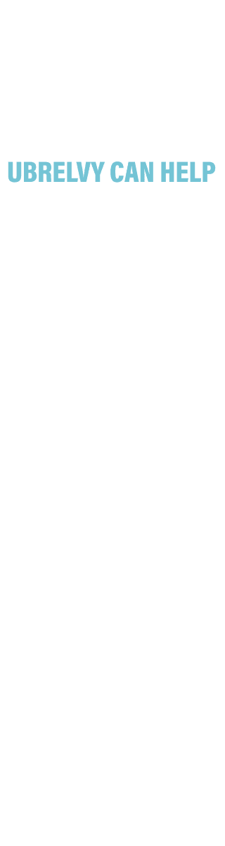 References: 1. MacGregor EA, Brandes J, Eikermann A, Giammarco R. Impact of migraine on patients and their families: the Migraine And Zolmitriptan Evaluation (MAZE) survey — phase III. Curr Med Res Opin. 2004;20(7):1143-1150. 2. UBRELVY [package insert]. North Chicago, IL: AbbVie Inc.; 2025. 3. Data on file. AbbVie Inc. 4. Hutchinson S, Dodick DW, Treppendahl C, et al. Ubrogepant for the acute treatment of migraine: pooled efficacy, safety, and tolerability from the ACHIEVE I and ACHIEVE II phase 3 randomized trials. Neurol Ther. 2021;10(1):235-249. 5. Dodick DW, Lipton RB, Ailani J, et al. Ubrogepant, an acute treatment for migraine, improved patient-reported functional disability and satisfaction in 2 single-attack phase 3 randomized trials, ACHIEVE I and II. Headache. 2020;60(4):686-700.