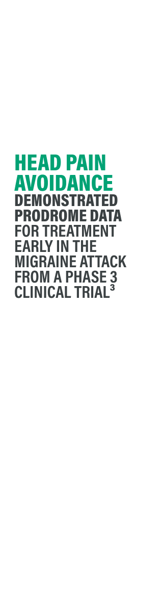 †Pain freedom was defined as a reduction from moderate or severe headache pain to no pain.1