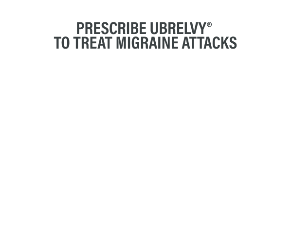 References: 1. UBRELVY [package insert]. North Chicago, IL: AbbVie Inc.; 2025. 2. Data on file. AbbVie Inc. 3. Dodick DW, Goadsby PJ, Schwedt TJ, et al. Ubrogepant for the treatment of migraine attacks during the prodrome: a phase 3, multicentre, randomised, double‑blind, placebo‑controlled, crossover trial in the USA. Lancet. 2023;402(10419):2307-2316. 4. Hutchinson S, Dodick DW, Treppendahl C, et al. Ubrogepant for the acute treatment of migraine: pooled efficacy, safety, and tolerability from the ACHIEVE I and ACHIEVE II phase 3 randomized trials. Neurol Ther. 2021;10(1):235-249. 5. Lipton RB, Dodick DW, Ailani J, et al. Effect of ubrogepant vs placebo on pain and the most bothersome associated symptom in the acute treatment of migraine: the ACHIEVE II randomized clinical trial. JAMA. 2019;322(19):1887-1898. 6. Dodick DW, Lipton RB, Ailani J, et al. Ubrogepant for the treatment of migraine. N Engl J Med. 2019;381(23):2230-2241. 7. Dodick DW, Lipton RB, Ailani J, et al. Ubrogepant, an acute treatment for migraine, improved patient‑reported functional disability and satisfaction in 2 single-attack phase 3 randomized trials, ACHIEVE I and II. Headache. 2020;60(4):686-700.