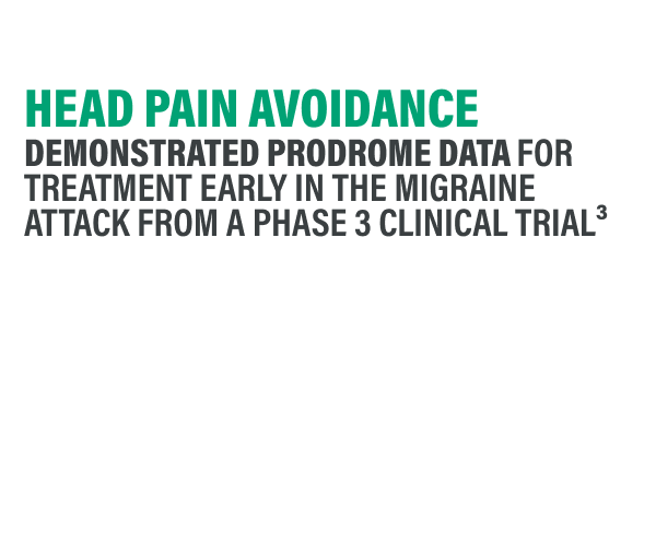 †Pain freedom was defined as a reduction from moderate or severe headache pain to no pain.1