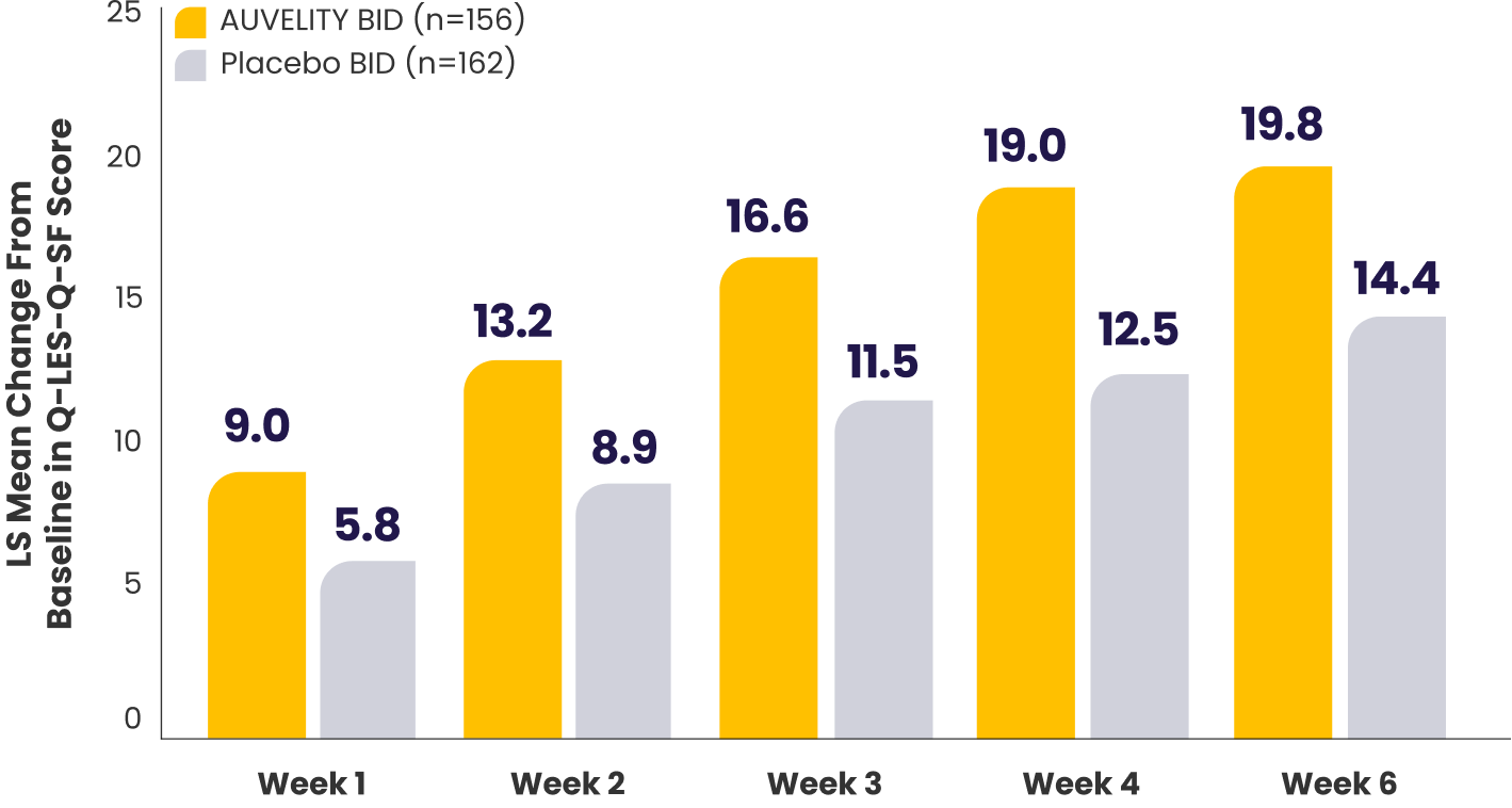 Improvement in quality of life and enjoyment scores from Week 1 to Week 61