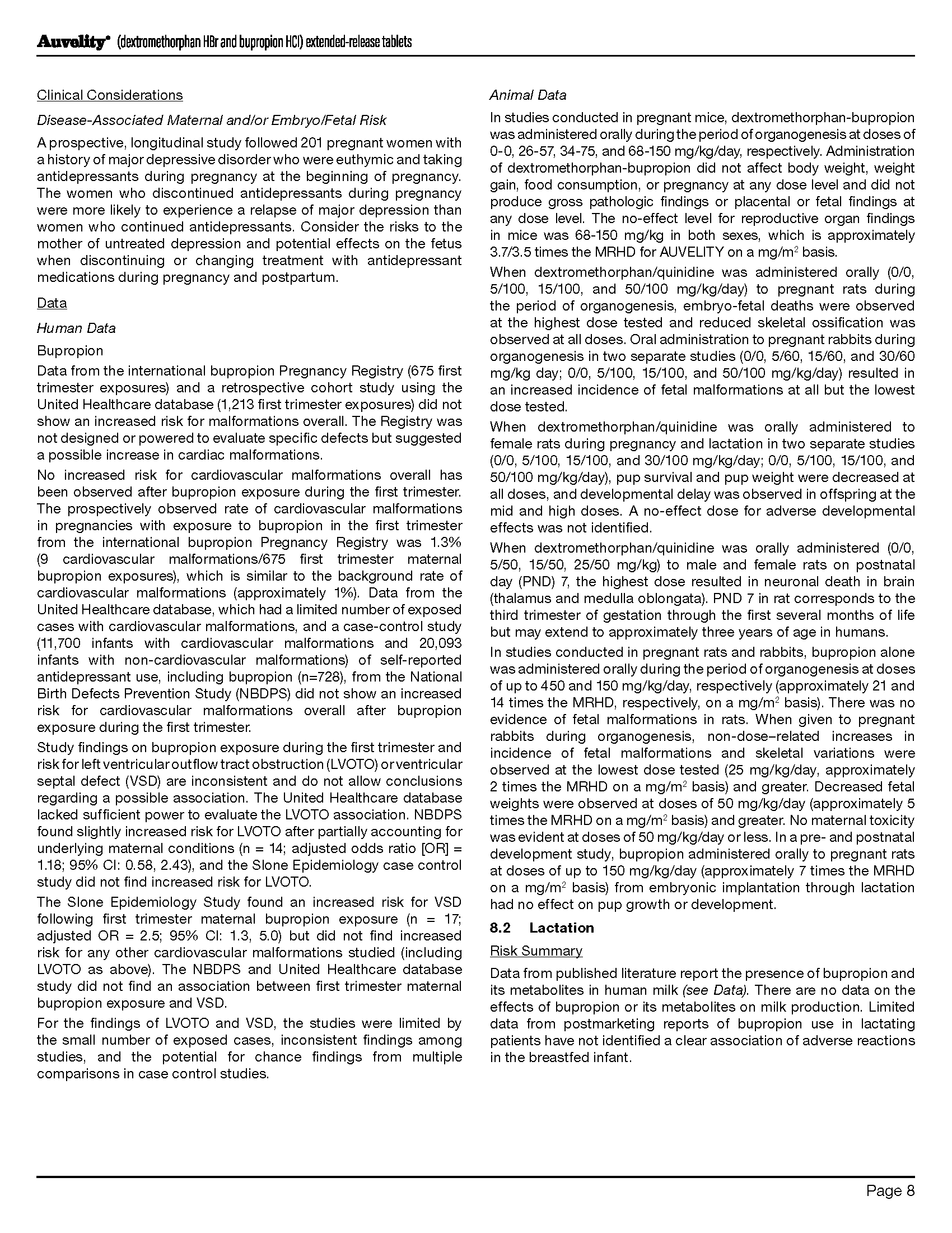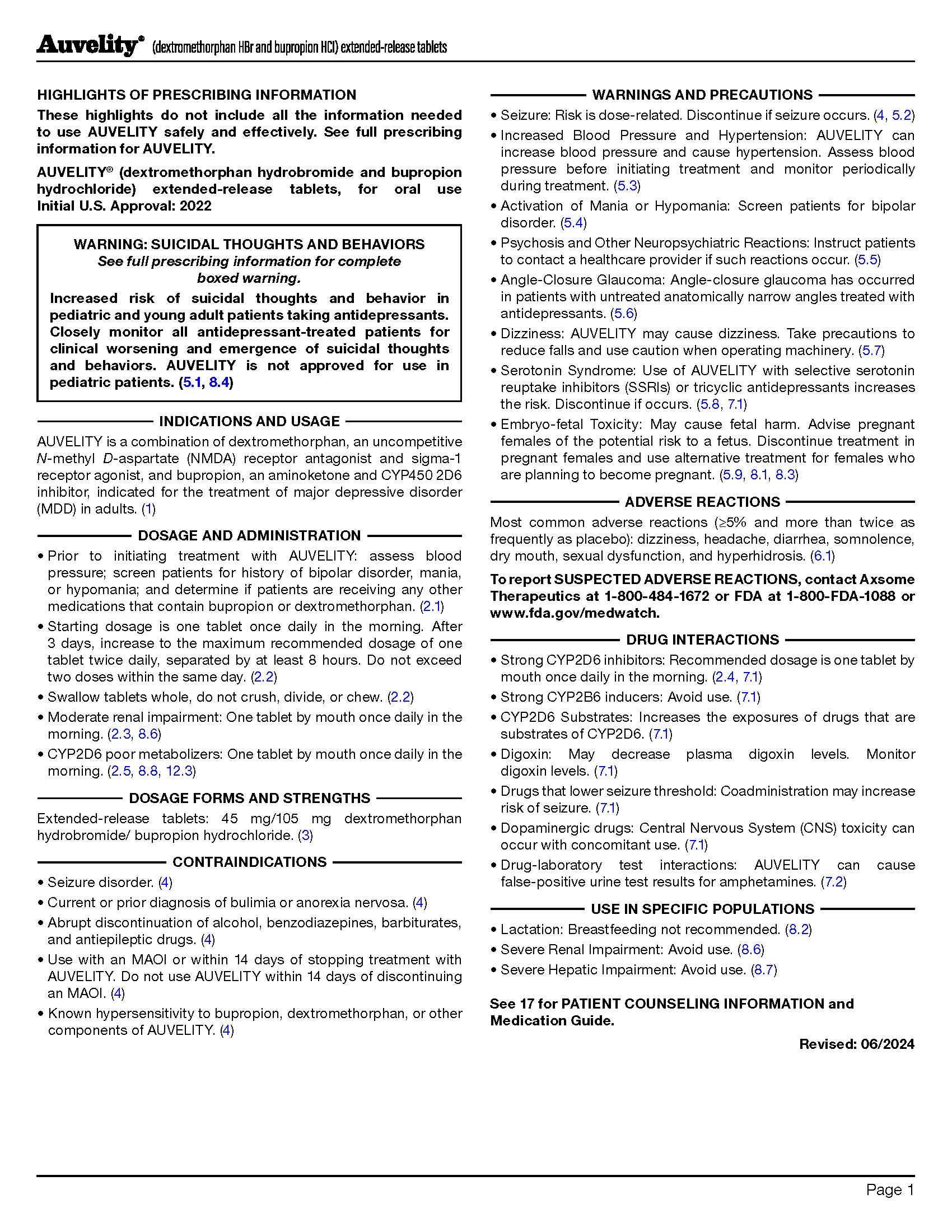 • AUVELITY should be swallowed whole and not crushed, divided, or chewed