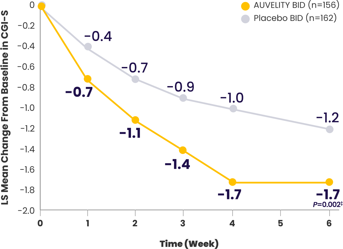 on the CGI-S scale vs placebo1-3
