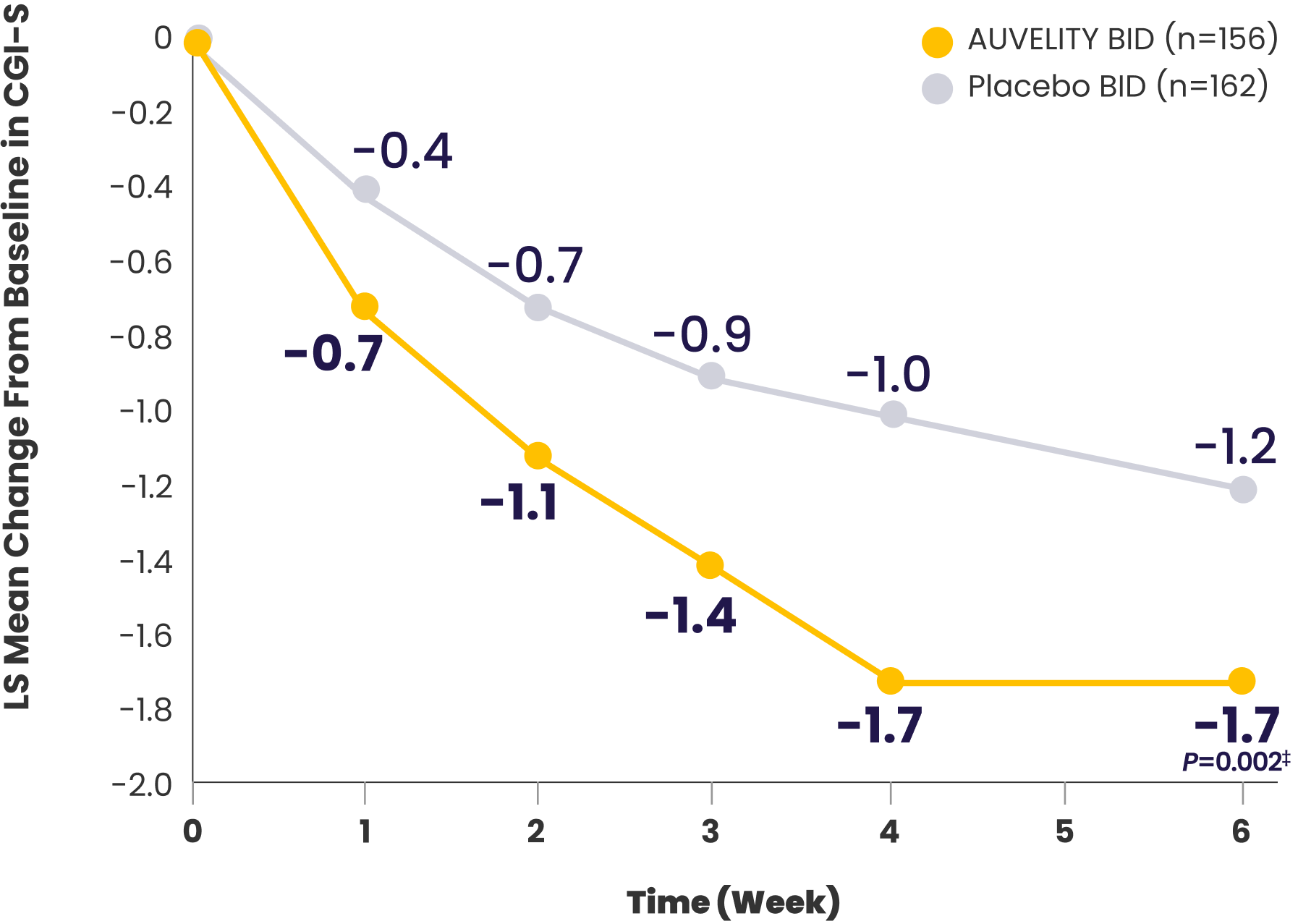 Reduction on the CGI-S scale from Week 1 to Week 61-3*