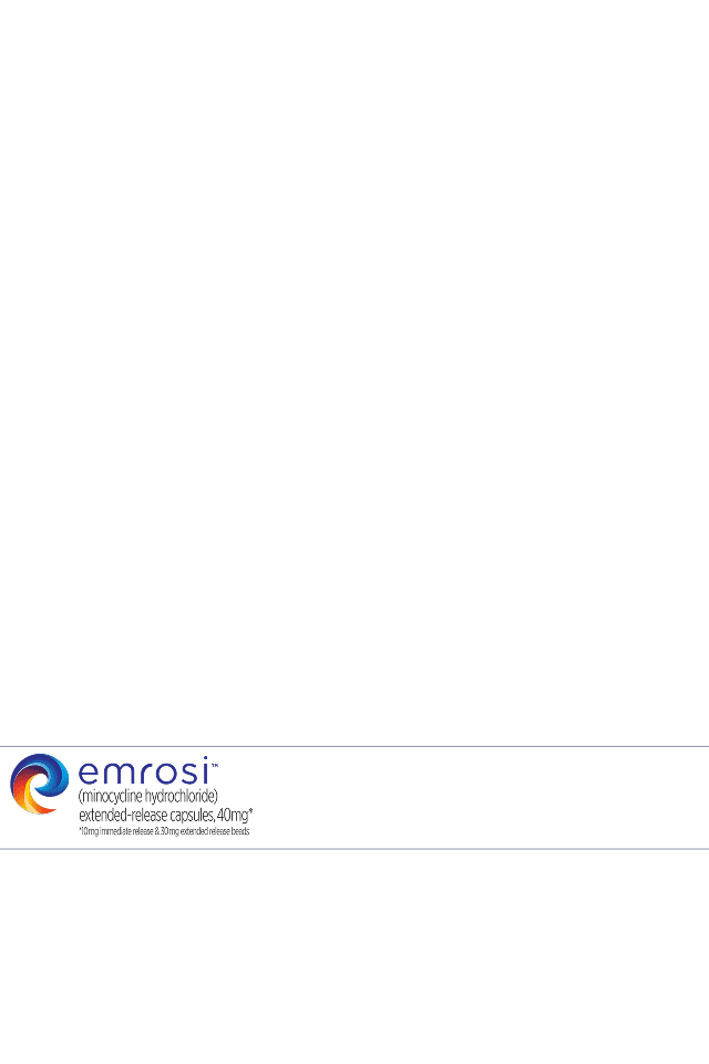 Limitations of Use: This formulation of minocycline has not been evaluated in the treatment or prevention of infections. To reduce the development of drug-resistant bacteria and to maintain the effectiveness of other antibacterial drugs, use EMROSI only as indicated.