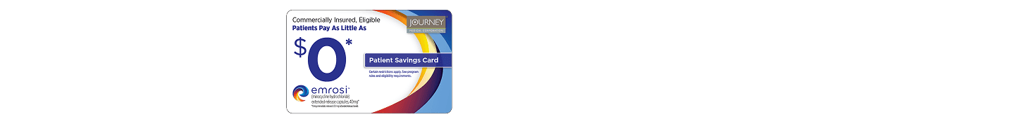 *Terms and conditions: This program offer is only good with a prescription of EMROSI™ and is valid for EMROSI™ (NDC 69489-131-30). This program offer is not valid for prescriptions reimbursed by Medicare, Medicaid, federal or state programs (including any state prescription drug programs). This program offer is valid only in the United States and cannot be redeemed at government subsidized pharmacies. Not valid with any other offer. Maximum reimbursement limits apply. Void where prohibited.