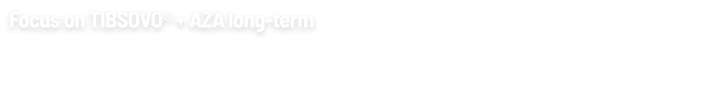 References: 1. Tibsovo. Package insert. Servier Pharmaceuticals LLC; 2023. 2. de Botton S, Montesinos P, Vives Polo S, et al. Updated efficacy and safety data from the AGILE study in patients with newly-diagnosed acute myeloid leukemia treated with ivosidenib + azacitidine compared to placebo + azacitidine. Poster presented at: 2023 American Society of Clinical Oncology Annual Meeting; June 2-6, 2023; Chicago, IL.