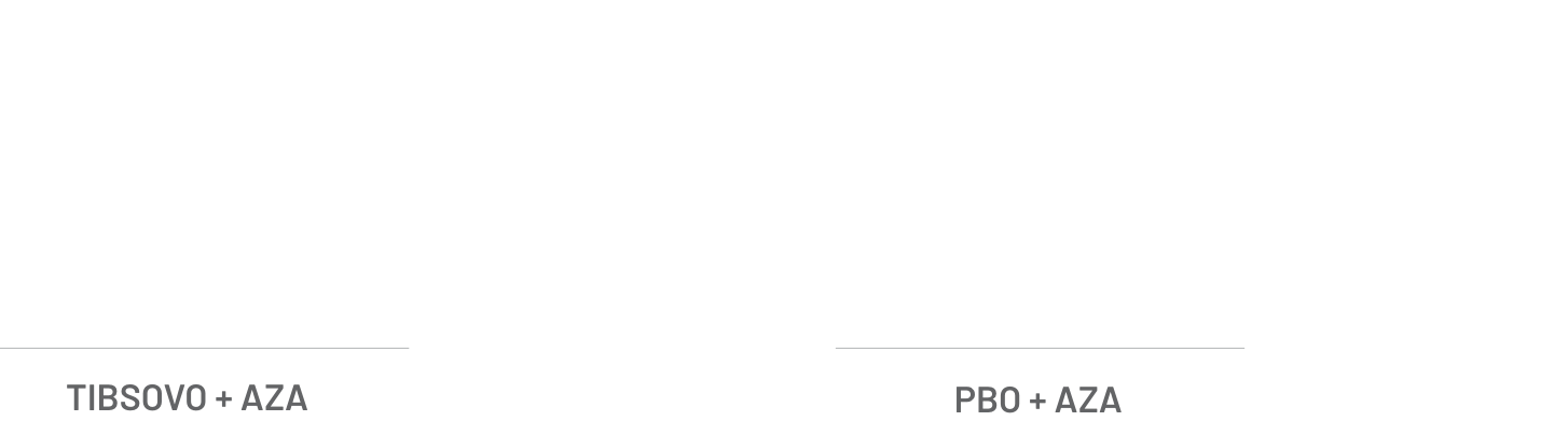 Median duration of CR was not estimable (NE) as of the data cutoff date in the TIBSOVO + AZA arm (95% CI,13.0-NE) and was 11.2 months in