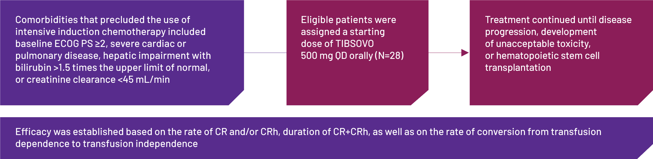 TIBSOVO is indicated for patients with a susceptible isocitrate dehydrogenase-1 (IDH1) mutation as detected by an FDA-approved test with: