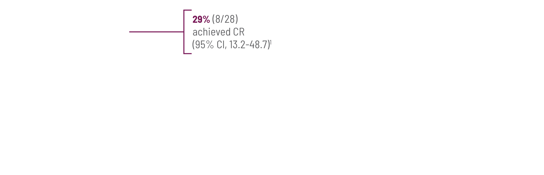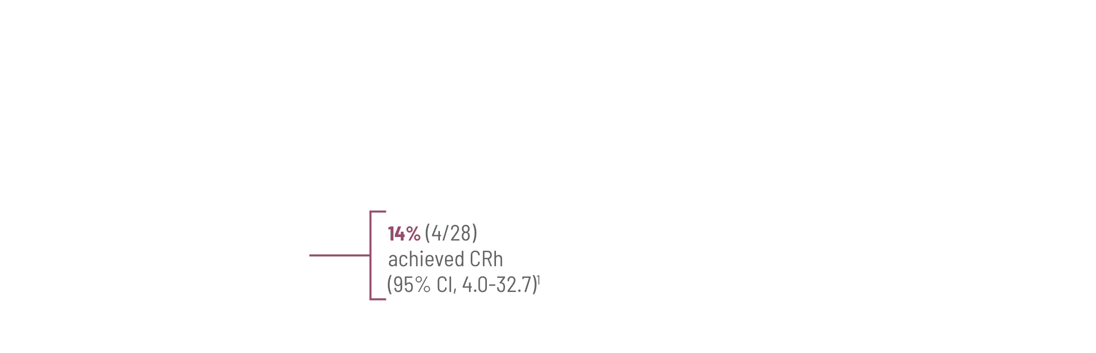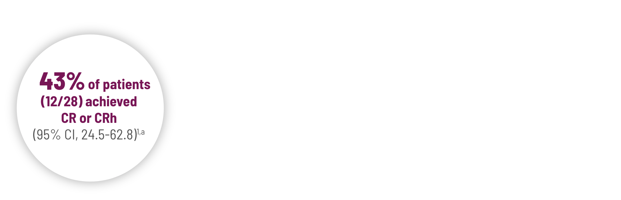 aCR was defined as <5% blasts in the bone marrow and no Auer rods, absence of extramedullary disease, full recovery of peripheral blood counts (absolute neutrophil count >1000/μL and platelets >100,000/μL), and independence from red blood cell transfusions.5 CRh was defined as <5% blasts in the bone marrow and no Auer rods, absence of extramedullary disease, and partial recovery of peripheral blood counts (absolute neutrophil count >500/μL and platelets >50,000/μL).