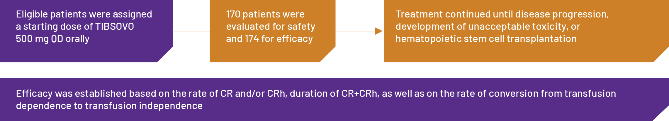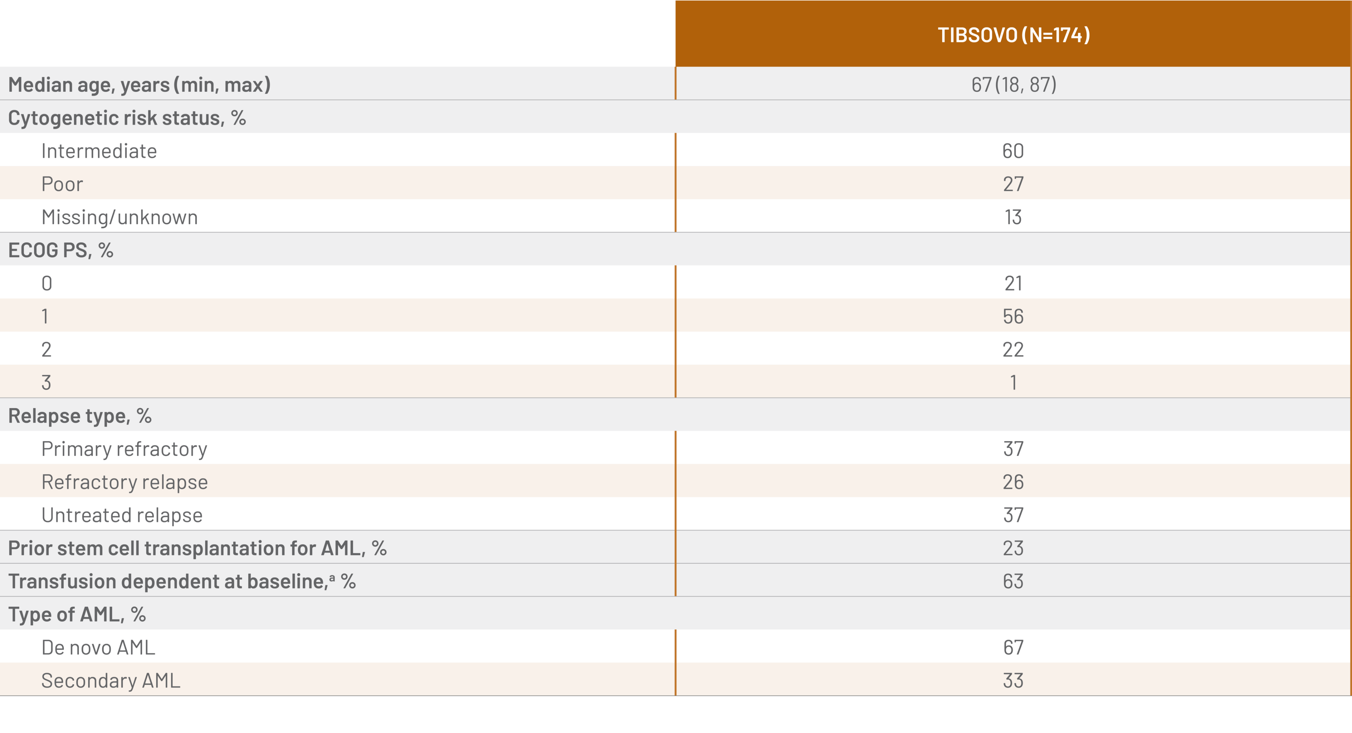 TIBSOVO is indicated for patients with a susceptible isocitrate dehydrogenase-1 (IDH1) mutation as detected by an FDA-approved test with: