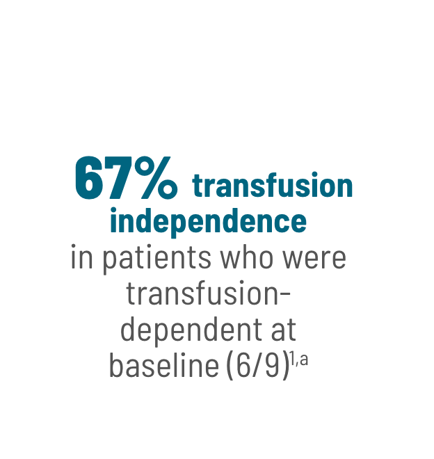 aPostbaseline transfusion independence was defined as a period of ≥56 days with no red blood cell and/or platelet transfusions after the start of study treatment and on or before the end of study treatment.3,5