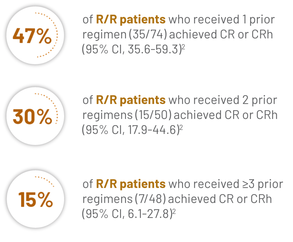 CI, confidence interval; CR, complete remission; CRh, complete remission with partial hematologic recovery; R/R, relapsed or refractory.