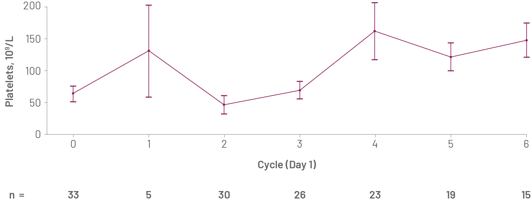 bOne patient enrolled in the dose-escalation phase was positive for the IDH1-D54N mutation by local testing and was not positive for the IDH1-R132 mutation by the companion diagnostic test; this patient was therefore excluded from the efficacy analyses.