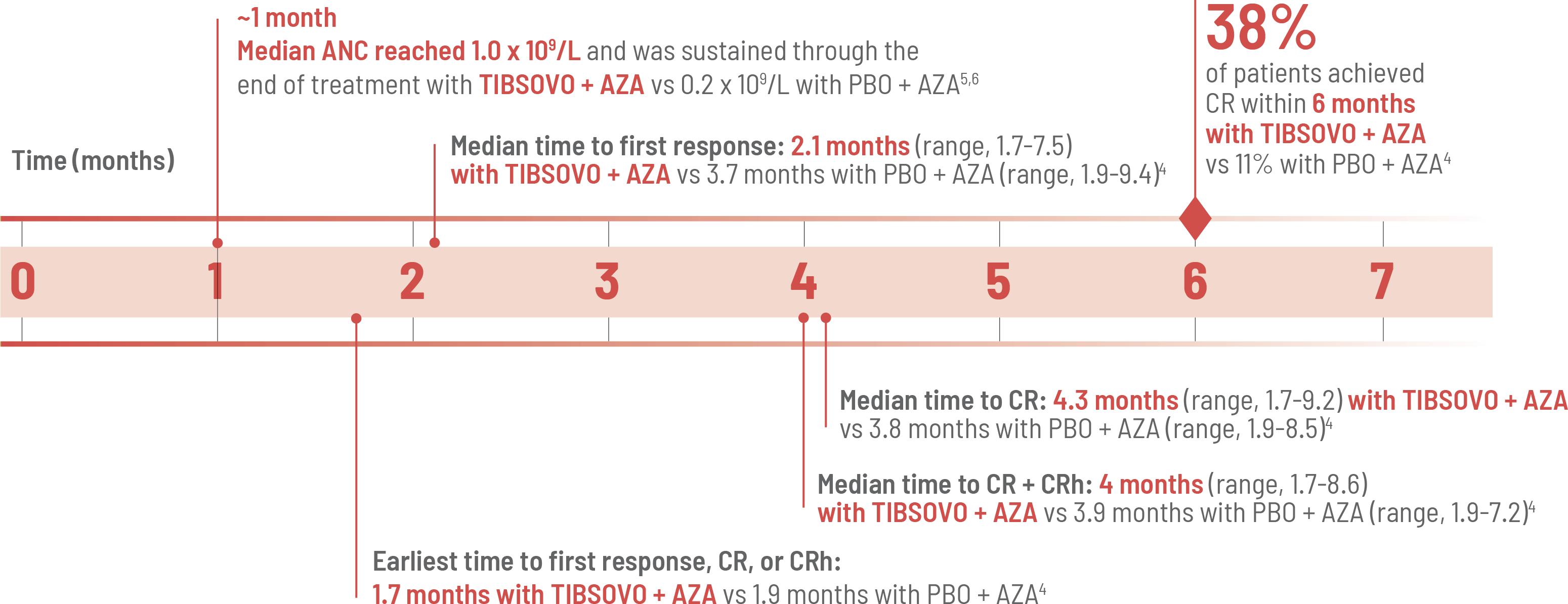 Patients treated with TIBSOVO can develop QT (QTc) prolongation and ventricular arrhythmias. Concomitant use of TIBSOVO with drugs known to prolong the QTc interval (eg, anti-arrhythmic medicines, fluoroquinolones, triazole anti-fungals, 5-HT3 receptor antagonists) and CYP3A4 inhibitors may increase the risk of QTc interval prolongation. Conduct monitoring of electrocardiograms (ECGs) and electrolytes. In patients with congenital long QTc syndrome, congestive heart failure, electrolyte abnormalities, or those who are taking medications known to prolong the QTc interval, more frequent monitoring may be necessary.
