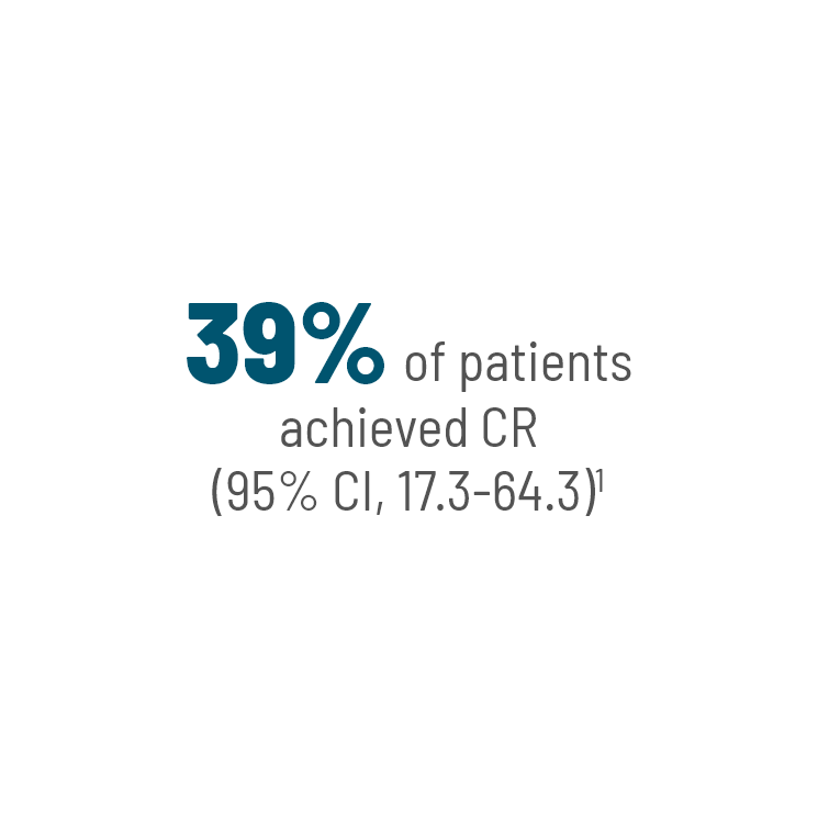aCR was defined as bone marrow ≤5% myeloblasts with normal maturation of all cell lines, hemoglobin ≥11 g/dL, platelets ≥100 x 109/L, neutrophils ≥1.0 x 109/L, and response lasting at least 4 weeks.3,5 43% of CR responders had baseline bone marrow blasts <5%.1